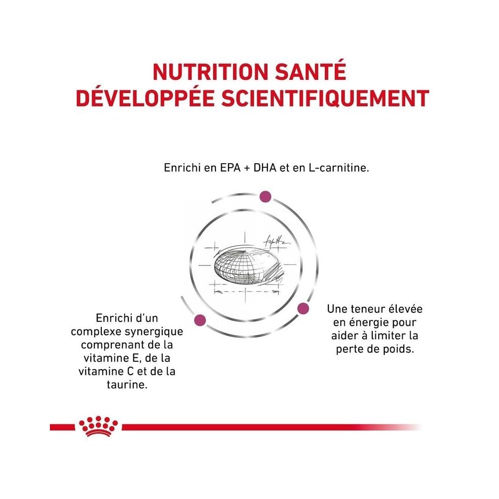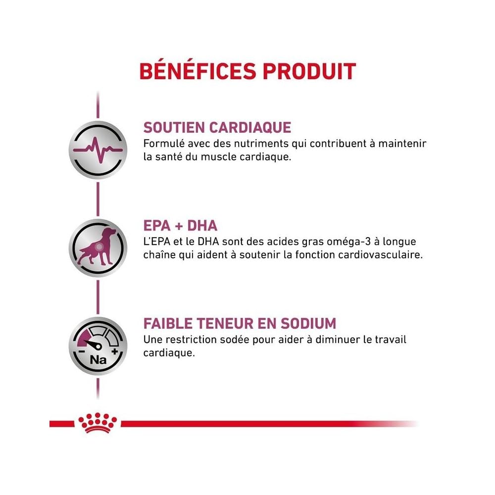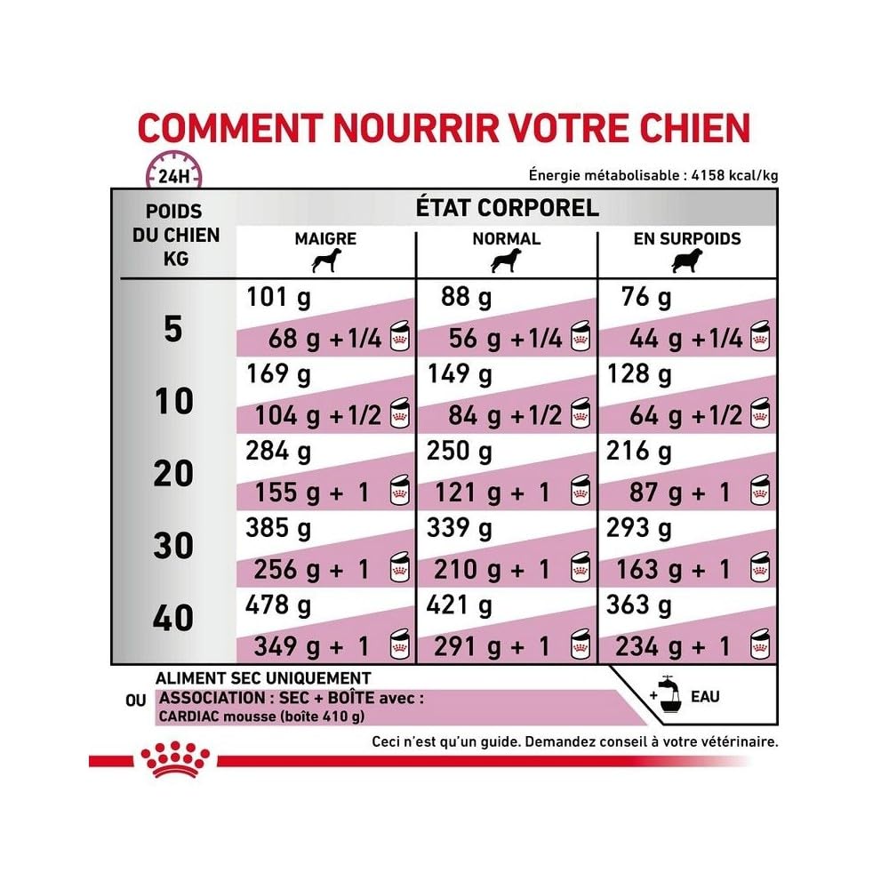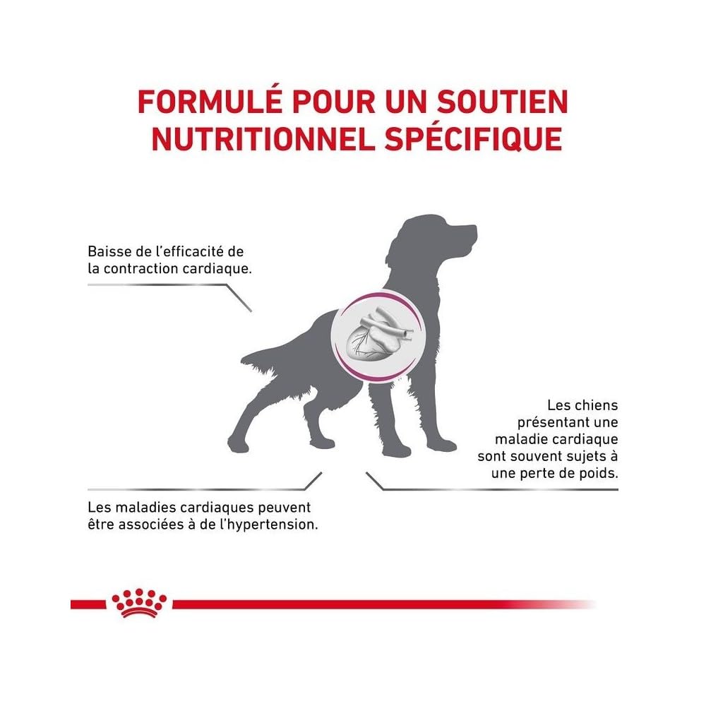 Royal Canin Veterinary Diet Cardiac Dog Dry Food is specially formulated to support heart health in dogs with cardiac conditions. It contains nutrients that help improve blood circulation, support vascular function, and maintain overall heart efficiency.